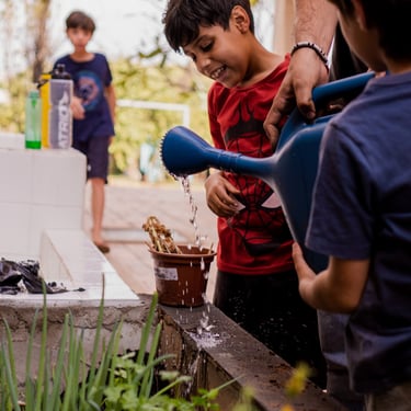Os processos de aprendizagem acontecem em duas jornadas - individual e coletiva. Na jornada individual, a criança e sua tutora estabelecem roteiros que contemplam os direitos de aprendizagem previstos na BNCC. Na jornada coletiva, o grupo define um projeto de pesquisa que será conduzido por meio de procedimentos científicos e gerará uma contribuição para a comunidade.